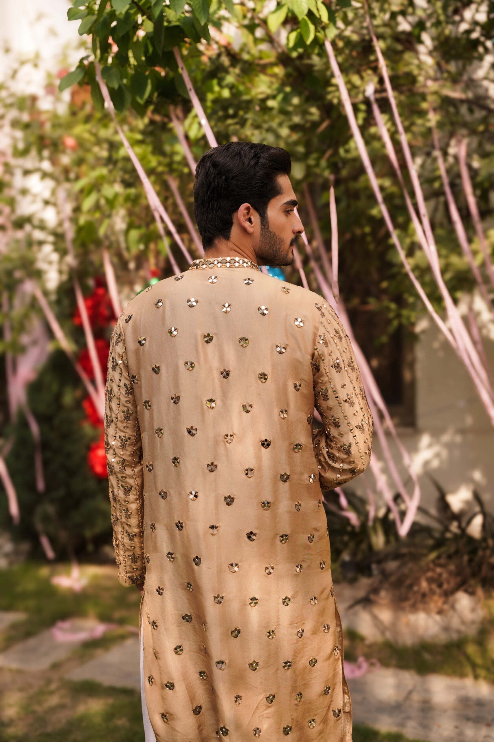 Pure Rawsilk mirror work heavily embroidered kurta.