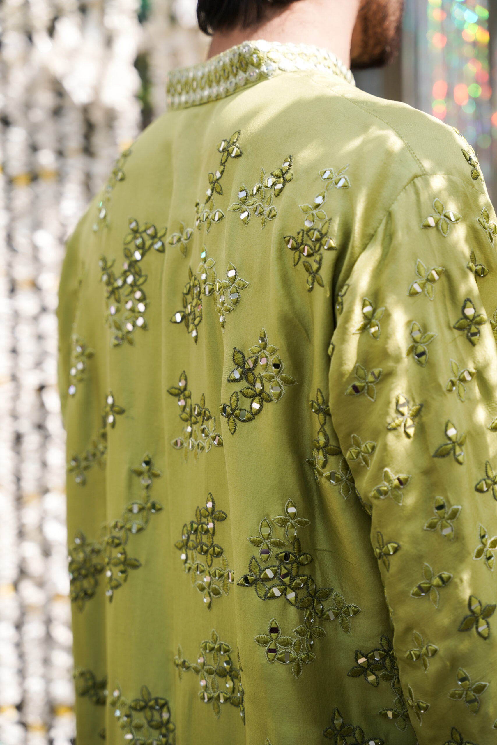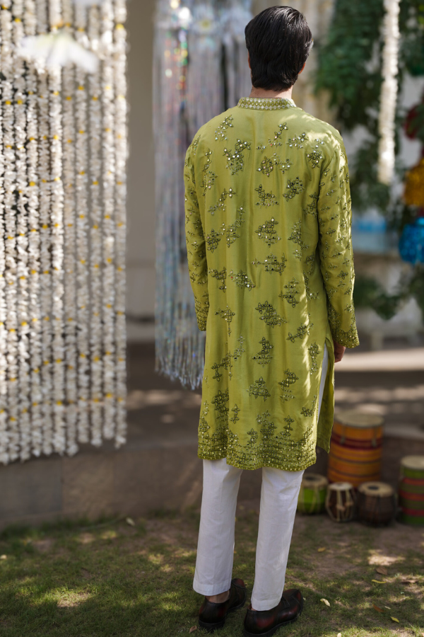 Pure Rawsilk mirror work heavily embroidered kurta.