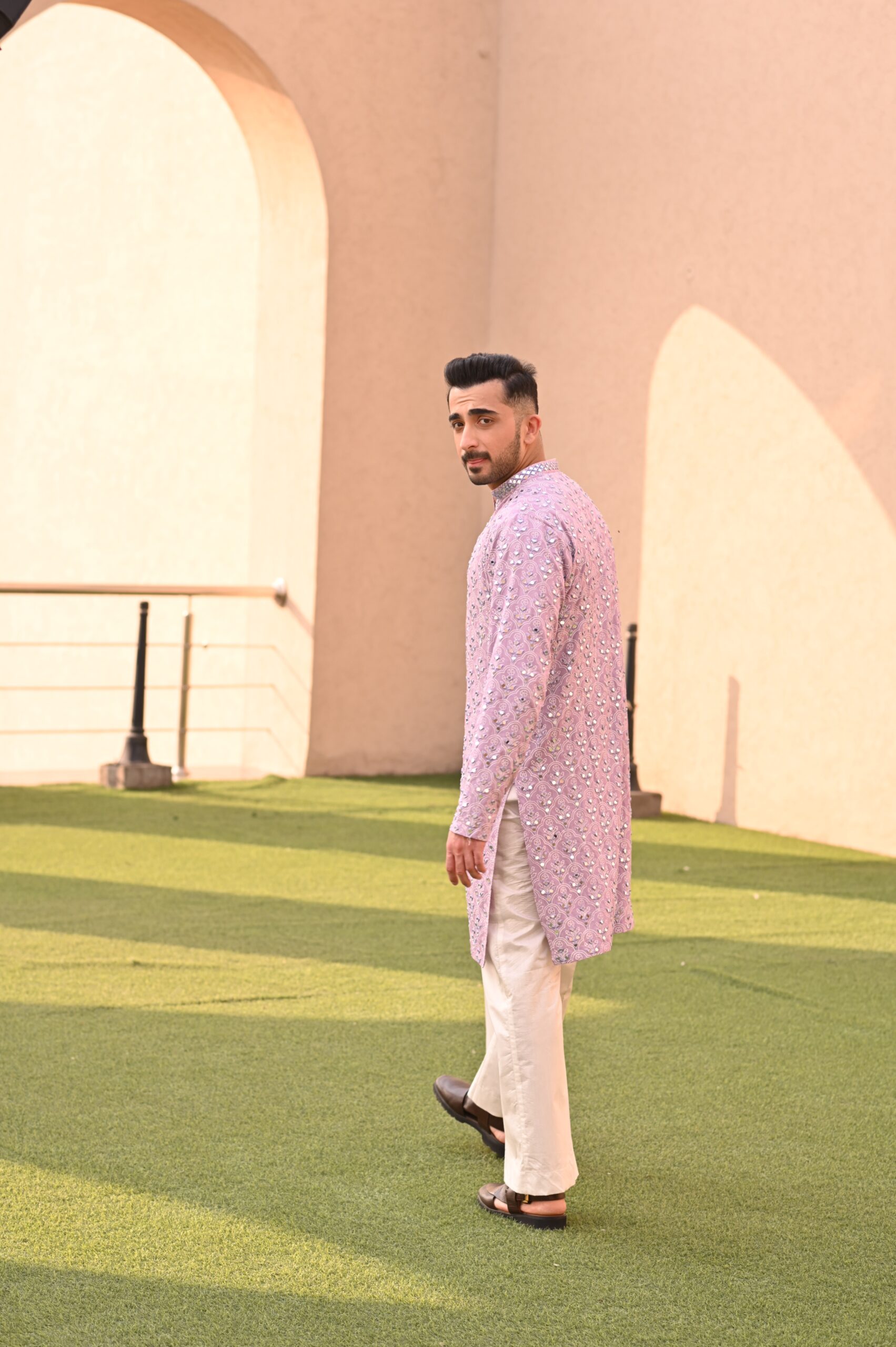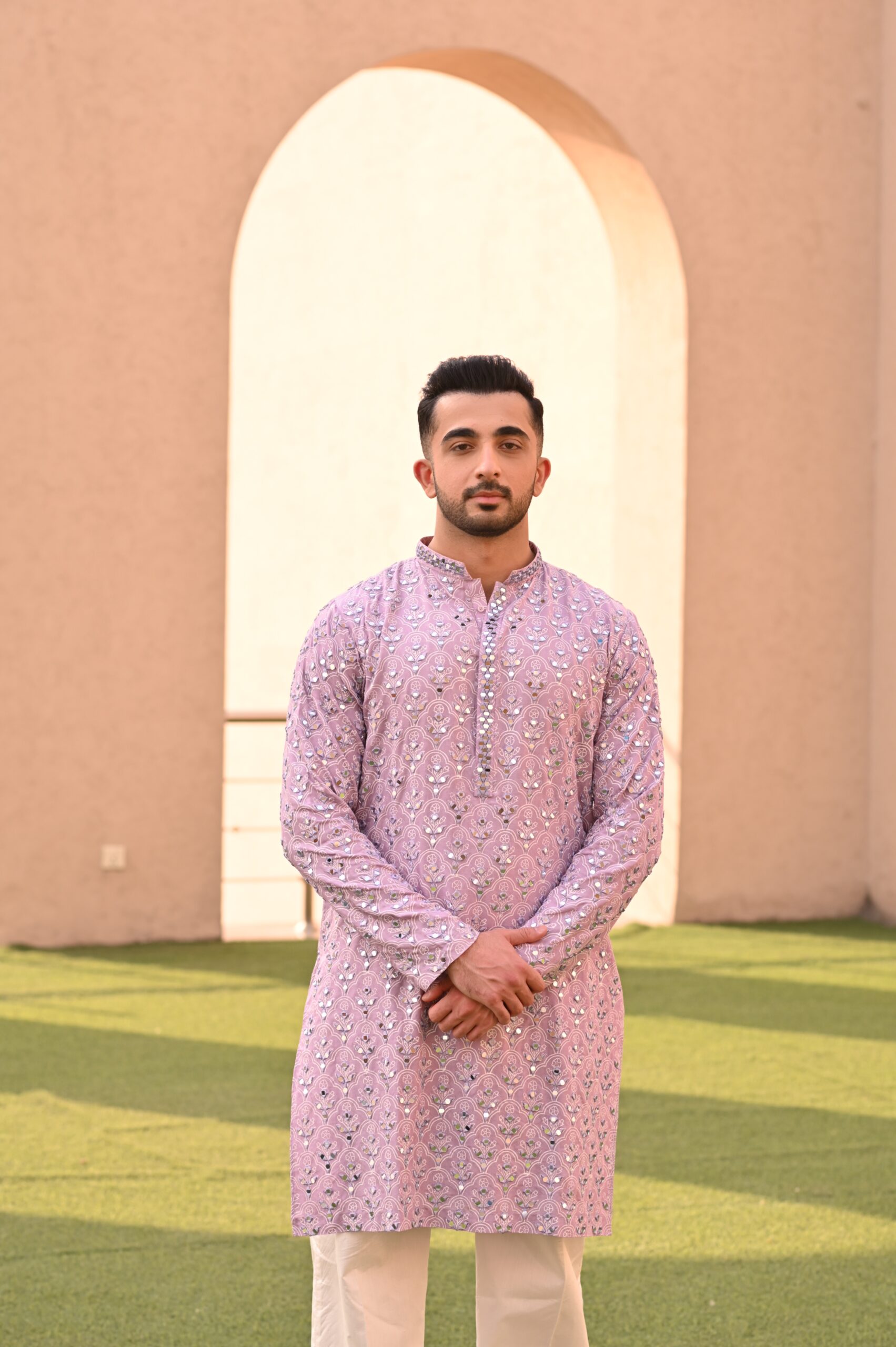 Pure Rawsilk, mirror-work, heavily embroidered kurta.