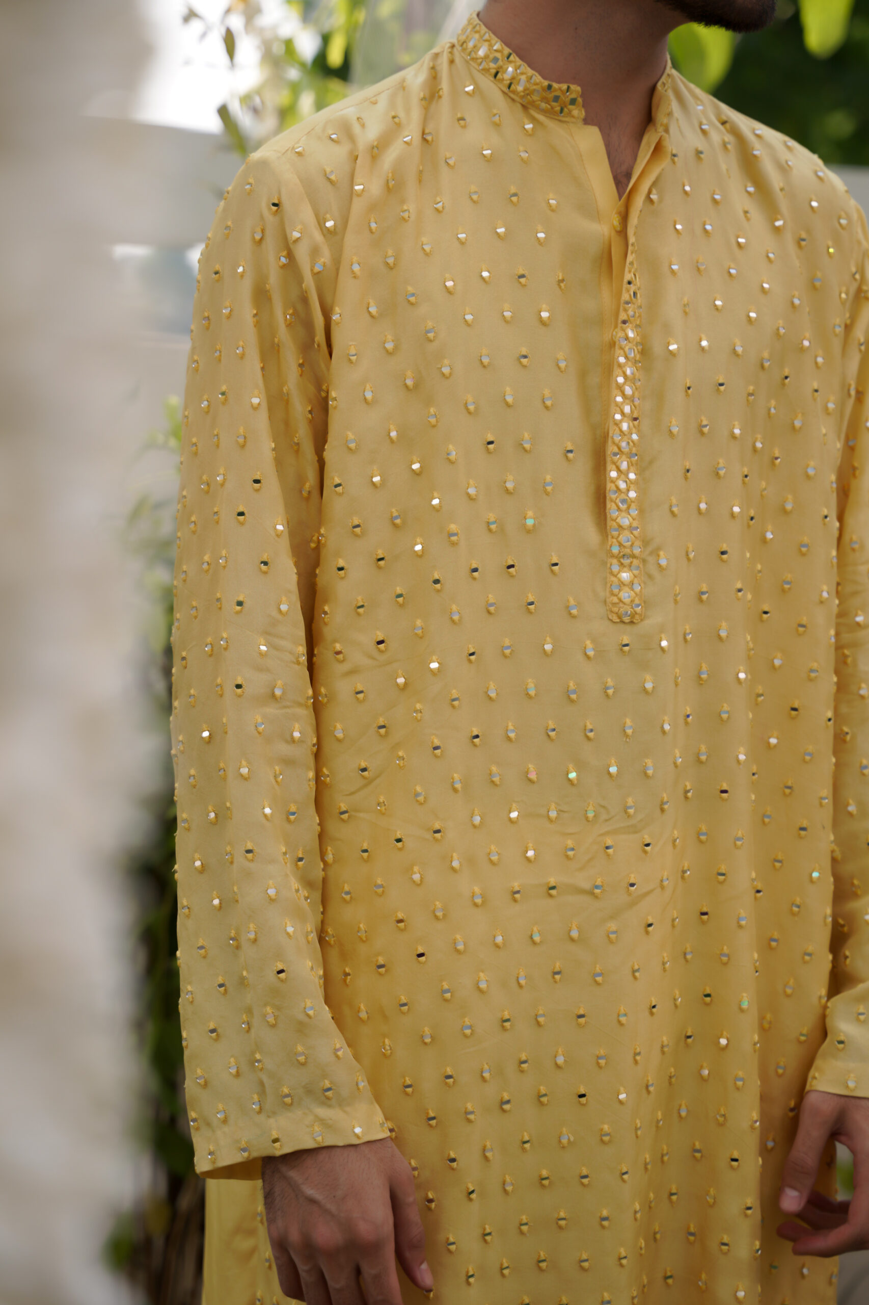 Pure Rawsilk mirror work heavily embroidered kurta.